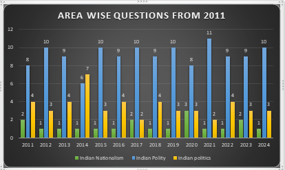 This overview helps you plan better — for example, if Indian Polity dominates a few consecutive years, you will know where to invest more time. And if Indian Politics gets more questions in recent years, you know the exam is leaning towards current socio-political realities.